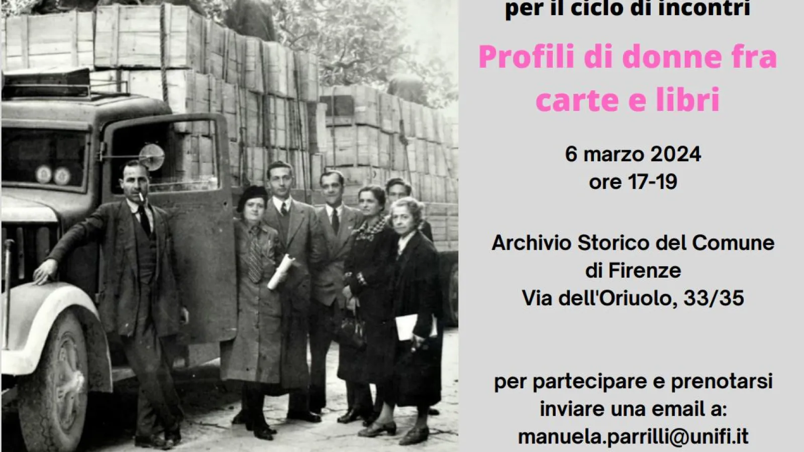 Mercoledì 6 marzo, per il ciclo a cura dell'Archivio Storico e dell'università di Firenze, nuovo appuntamento dedicato a Guerriera Guerrieri