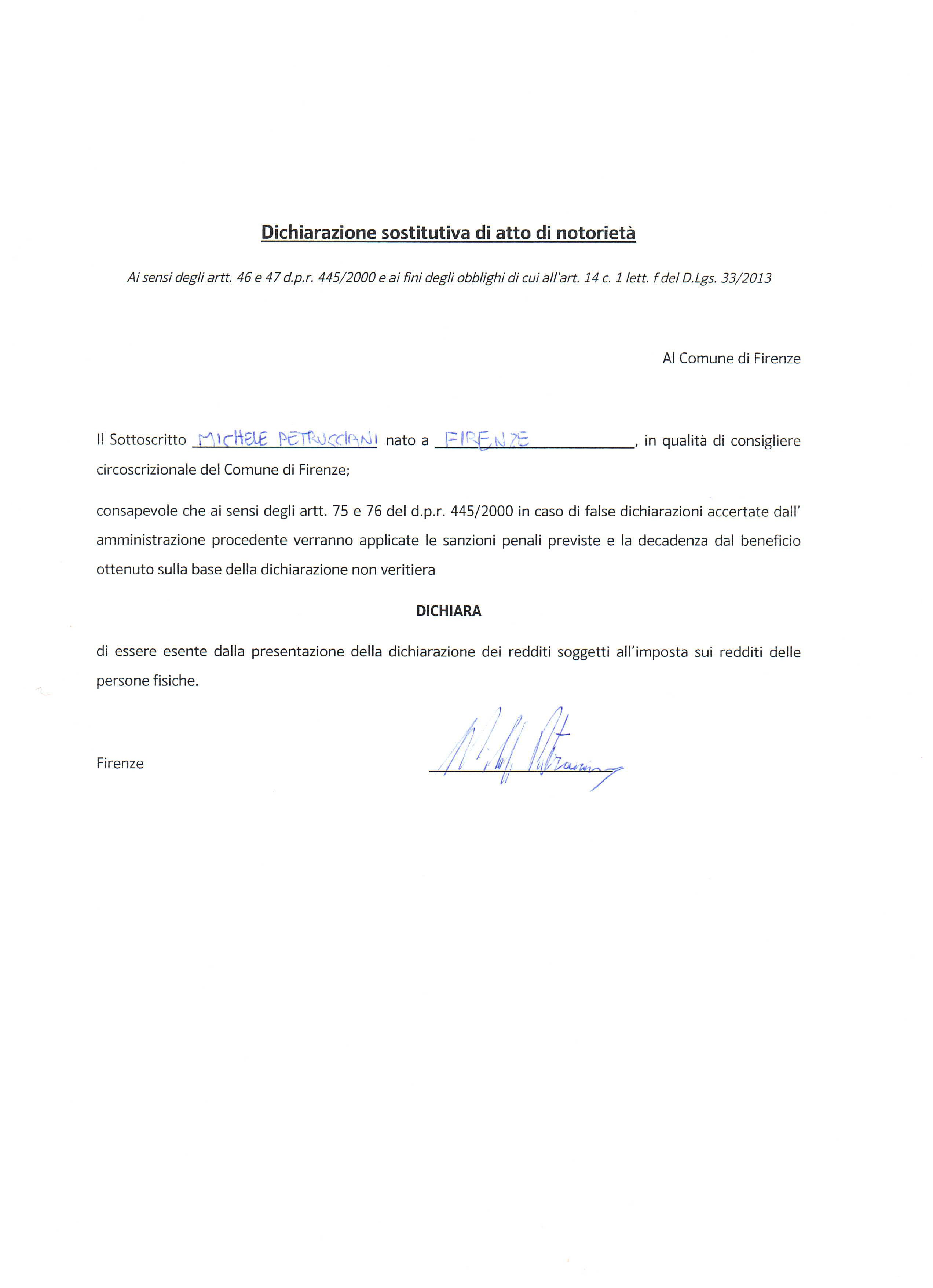 Michele Petrucciani Consigliere del Quartiere 4 Gruppo Lega Schmidt SindacoCondividi Facebook Twitter Linkedin Telegram WhatsappVedi azioni Scarica Stampa EmailIncarichiConsigliere di QuartiereOrganizzazioniQuartiere 4 Organo rappresentativo circoscrizionale Presidente Mirko Dormentoni Punti di contatto Email quartiere4@comune.fi.it Curriculum Vitae DocumentCurriculum (82.53 KB) Redditi DocumentDichiarazione redditi 2023 (1.13 MB)DocumentREDDITI 2024 (263.34 KB) Spese elettorali DocumentSpese elettorali (95.17 KB) Situazione patrimoniale e associativa DocumentSituazione patrimoniale e associativa 2024 (130 KB)DocumentMOD A2 2025 (1.24 MB) Altri dati DocumentRequisiti eleggibilità e compatibilità (103.11 KB)DocumentAltre cariche ed incarichi 2024 (89.84 KB)Documentmod. A3 2025 (494.64 KB)
