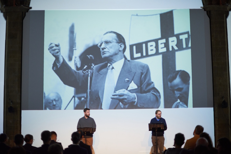 Lorenzo Baravalle e Lorenzo Pregliasco hanno raccontato gli albori della Repubblica dando corpo e voce a chi la Costituzione ha contribuito a scriverla, ricostruendo la genesi del processo che ha portato all'Italia come oggi la conosciamo, con le sue istituzioni democratiche, i suoi valori fondanti e irrinunciabili, le sue fondamenta antifasciste.