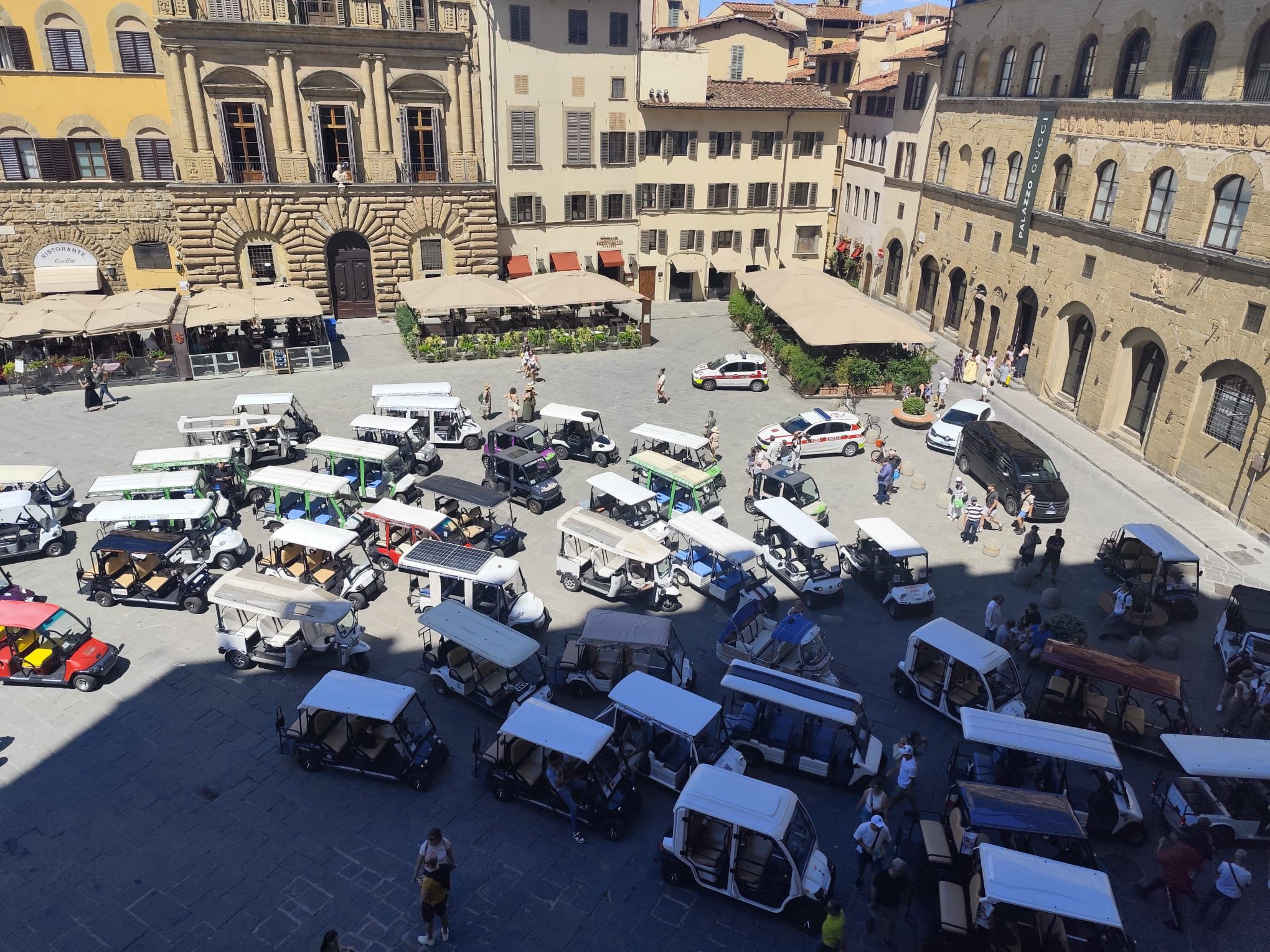 “Non stupisce – spiega il capogruppo del MoVimento 5 Stelle Lorenzo Masi – quanto sta accadendo sotto le finestre di Palazzo Vecchio oggi pomeriggio. A seguito del provvedimento degli assessori Vicini e Giorgio, che regolamenta e restringe le modalità di lavoro dei caddy elettrici e dei golf car, assistiamo ad una certa e propria invasione di mezzi elettrici.
