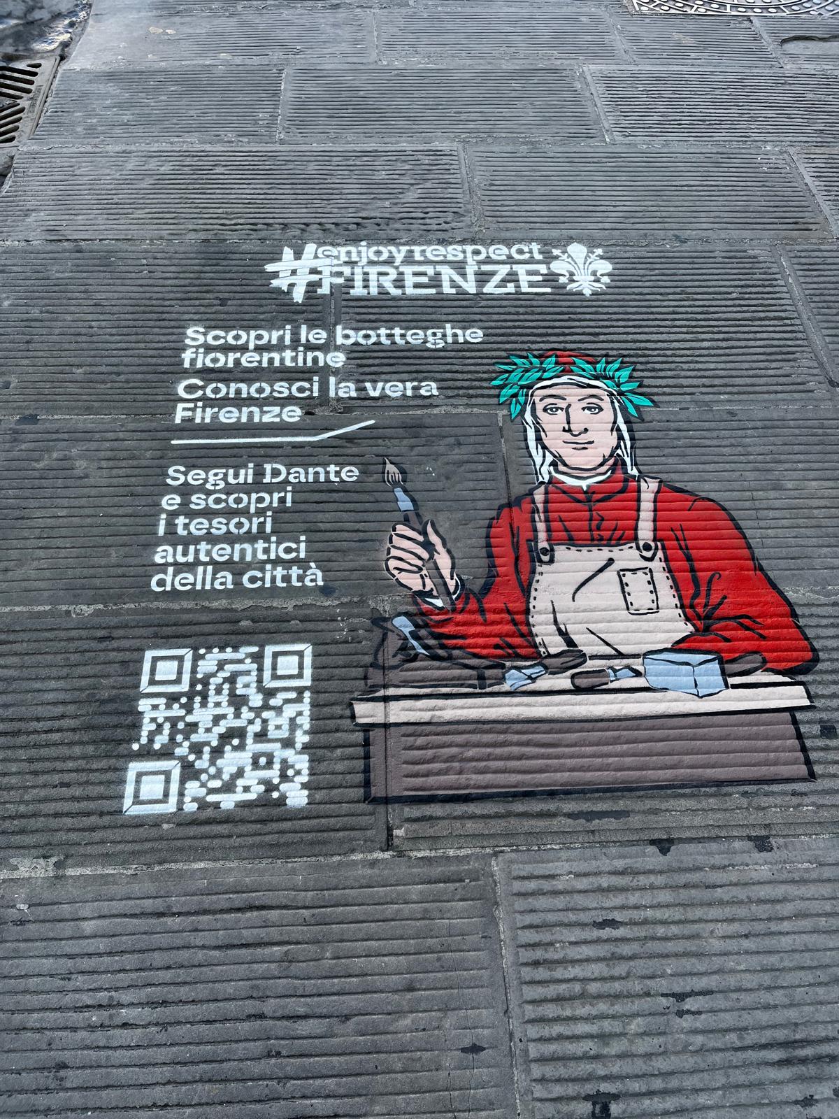 “Scoprire i tesori più autentici di Firenze vuol dire godere appieno della bellezza della città e al tempo stesso rispettarla – dice l’assessore al Turismo Jacopo Vicini – da questa settimana  la campagna Enjoy&RespectFirenze è diffusa nelle nostre strade e nelle nostre piazze anche sotto forma di graffiti, con un linguaggio e con modalità di comunicazione innovative pensate per raggiungere il maggior numero possibile di persone che visitano Firenze. Attraverso la fondazione Destination Florence mandiamo un messaggio chiaro, un invito a conoscere nel profondo e nel migliore dei modi la città, e lo facciamo mentre entra nel vivo la campagna Adotta una Bottega, che non a caso invita a visitare le botteghe storiche per scoprire la vera Firenze”.
