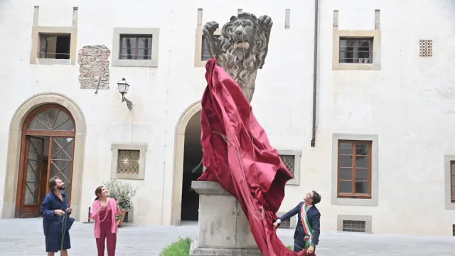 ll monumentale leone rampante di Francesco Vezzoli installato permanentemente nel cortile all’interno di Palazzo Vecchio