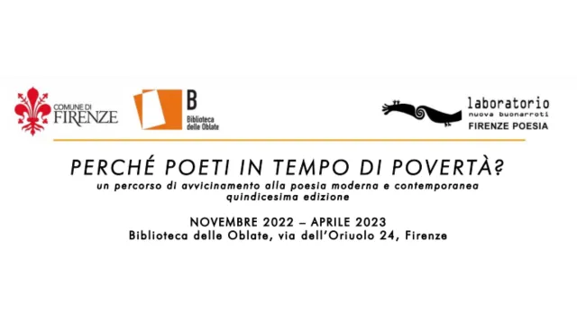 Al via lunedì 14 novembre alla Biblioteca delle Oblate la 15° edizione di “Perché poeti in tempo di povertà”, un percorso di avvicinamento alla poesia moderna e contemporanea.