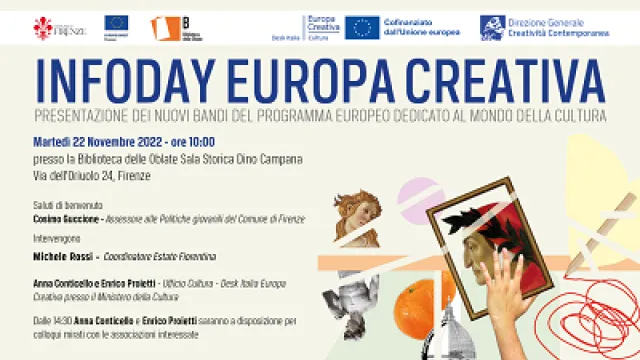 Martedì 22 Novembre alla Biblioteca delle Oblate una giornata di approfondimento su Europa Creativa in collaborazione con l'Ufficio Cultura - Desk Italia del programma