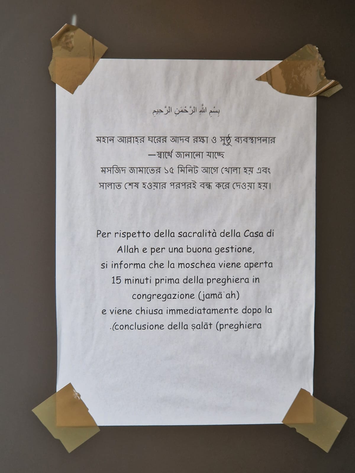 “Notiamo da un avviso affisso sulla porta, che l'Associazione per una Moschea di Firenze, il cui legale responsabile è l’imam Izzedin Elzir, avrebbe chiesto i permessi per aprire un nuovo spazio. Le persone che ho incontrato sul luogo sono tutti di origine bengalese. Di fatto, sono gli stessi aderenti all’associazione culturale che hanno traslocato da una parte all'altra della strada per ampliare la moschea.