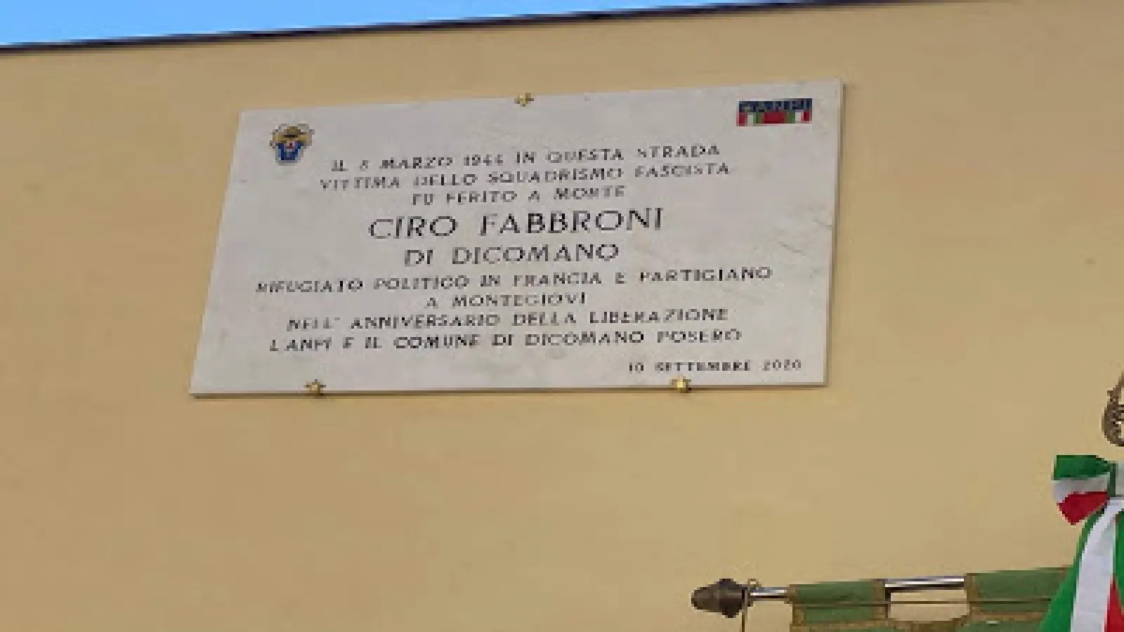 Una targa in memoria del partigiano Fabbroni in via Fratelli Bandiera