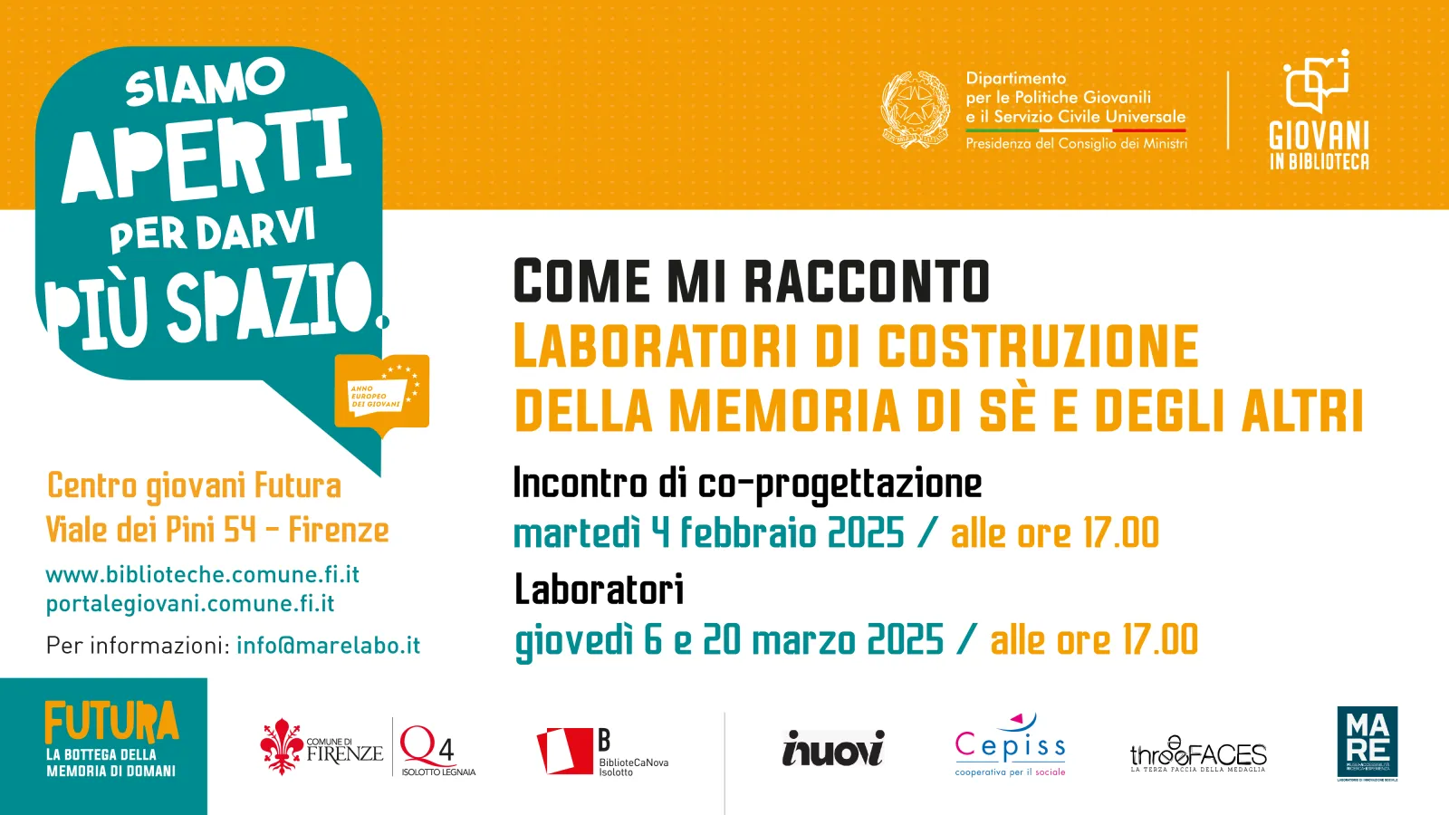 A marzo un laboratorio di costruzione della memoria di sè e degli altri al Centro Giovani Futura