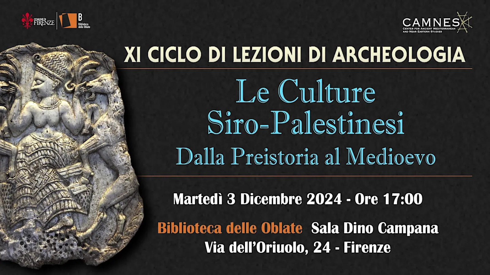 Alla Biblioteca delle Oblate un approfondimento sulle culture siro-palestinesi dalla Preistoria al Medioevo a cura di CAMNES