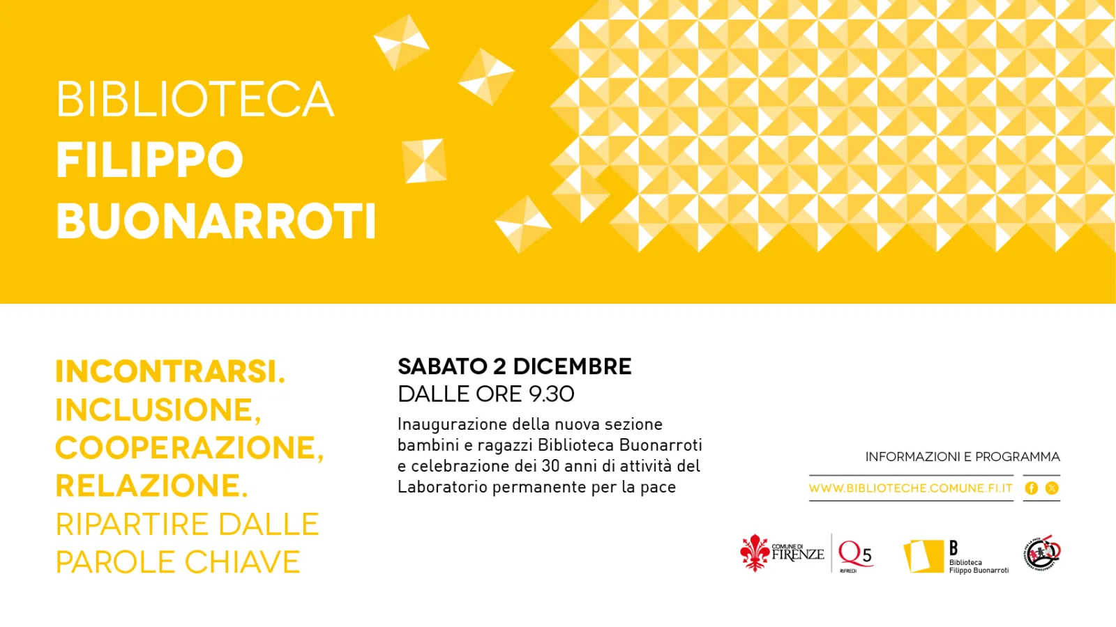 Il 2 dicembre inaugurazione nuova sezione bambini e ragazzi della Biblioteca Buonarroti e celebrazione dei 30 anni di attività del Laboratorio permanente per la pace