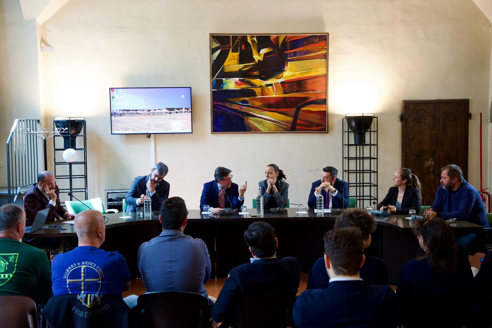 Un’iniziativa organizzata grazie alla collaborazione del Calcio Storico Fiorentino con il suo presidente Michele Pierguidi e il direttore del Corteo storico Filippo Giovannelli. Alla conferenza stampa hanno partecipato anche il vice presidente del Consiglio comunale Alessandro Draghi ed i presidenti dei Quattro Colori.