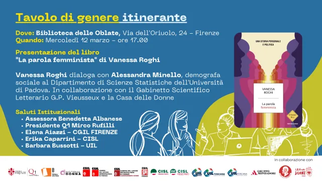 Mercoledì 12 marzo Vanessa Roghi sarà ospite della Biblioteca delle Oblate per il quarto incontro del Tavolo di genere itinerante.