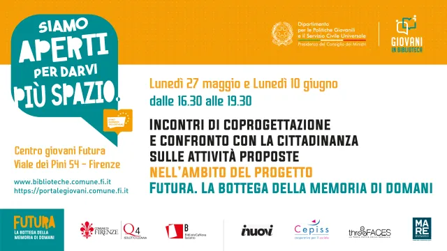 Lunedì 27 maggio e 10 giugno incontri di coprogettazione al Centro giovani Futura/Punto di lettura Luciano Gori