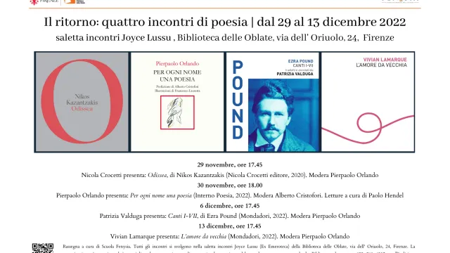 Al via lunedì 14 novembre alla Biblioteca delle Oblate la 15° edizione di “Perché poeti in tempo di povertà”, un percorso di avvicinamento alla poesia moderna e contemporanea.