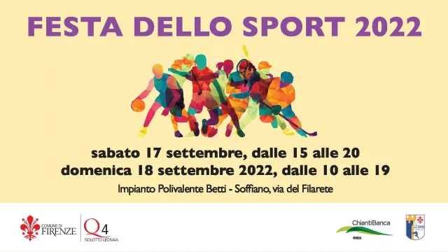 Sabato 17 e domenica 18 settembre torna la Festa dello Sport del Quartiere 4. Appuntamento presso l’impianto sportivo Betti, in via del Filarete (zona Soffiano), sabato pomeriggio dalle 15 alle 20 e domenica tutto il giorno, dalle 10 alle 19